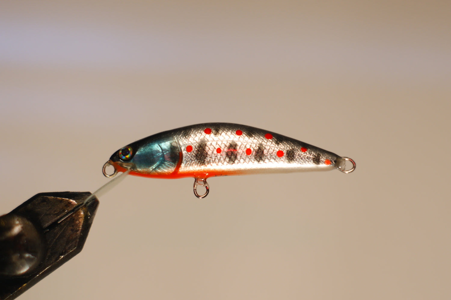 Trout minnow hand-made lure from balsa wood, surface aluminum foil, stainless thru wire construction, and super strong fiberboard lip.