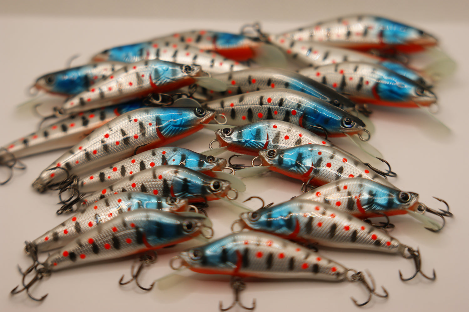 Each lure is hand-made from wood, hardened body foiled with strong flash underwater.