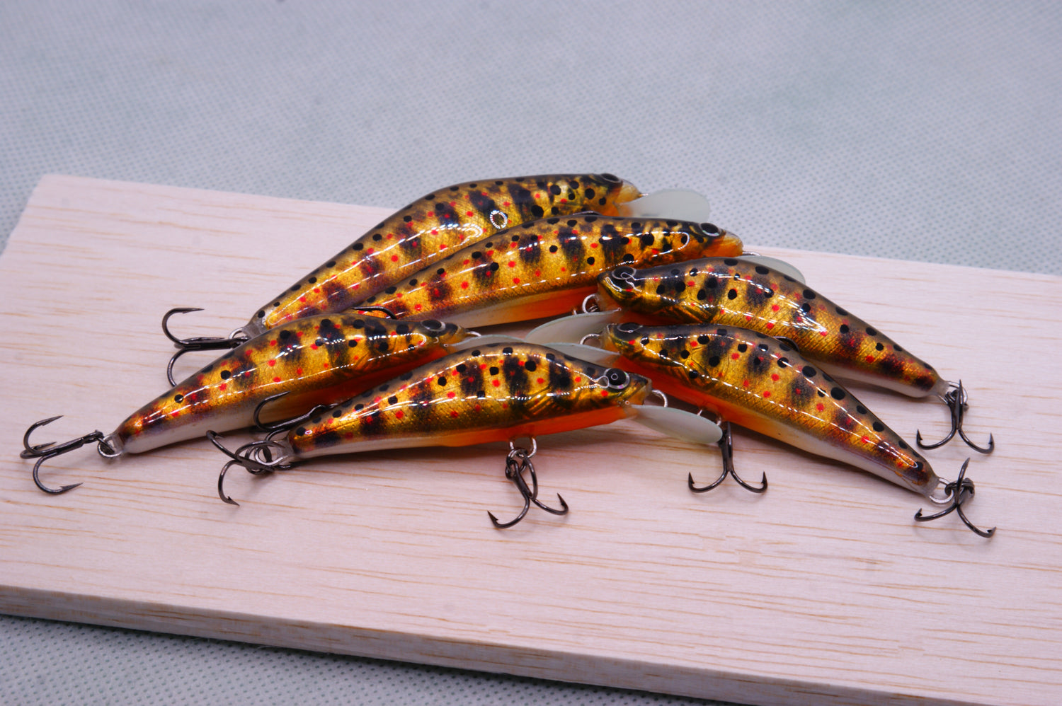 Trout minnow hand-made lure from balsa wood, surface aluminum foil, stainless thru wire construction, and super strong fiberboard lip.