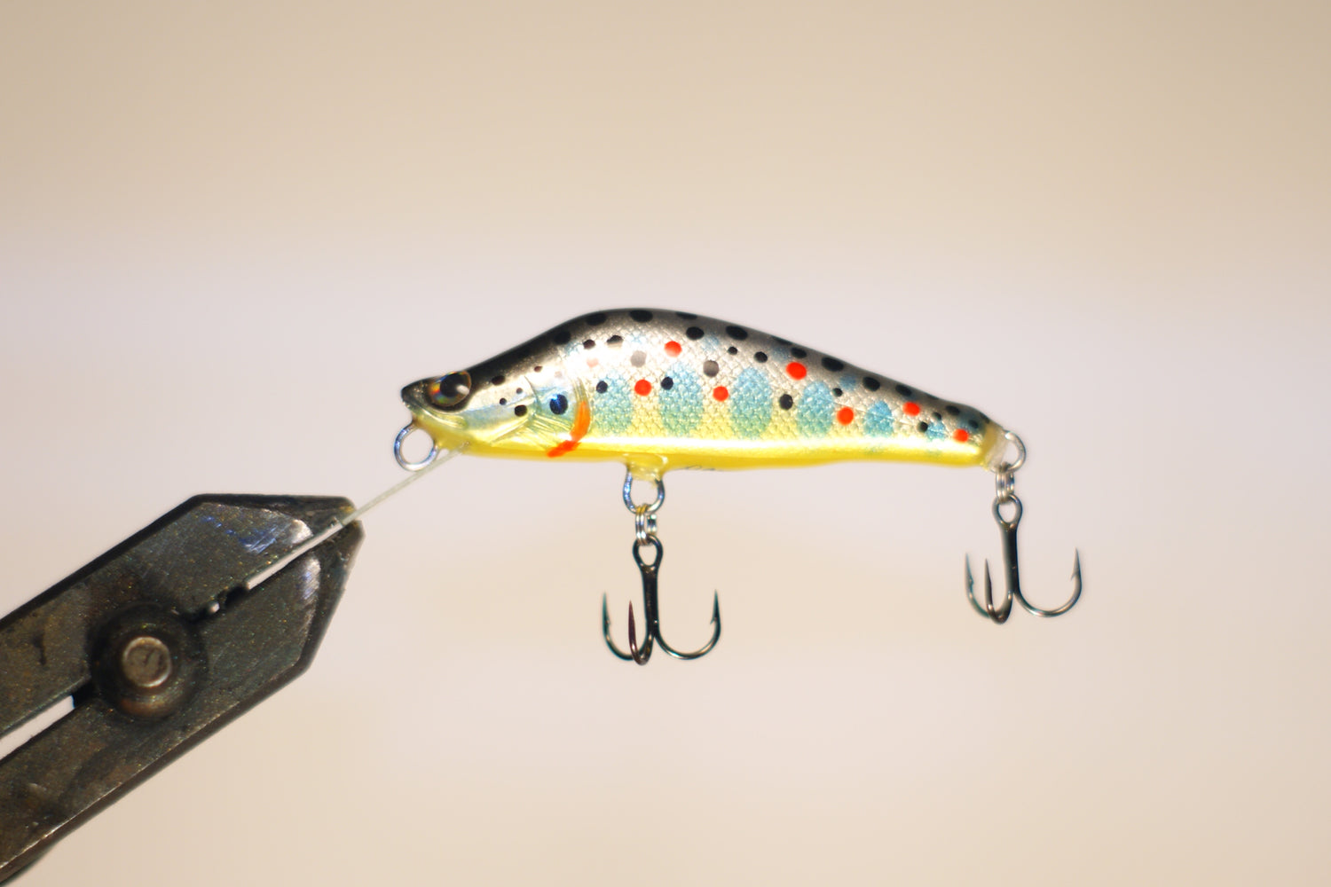 Trout minnow hand-made lure from balsa wood, surface aluminum foil, stainless thru wire construction, and super strong fiberboard lip.