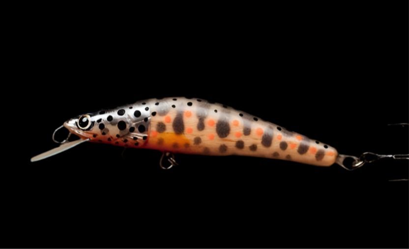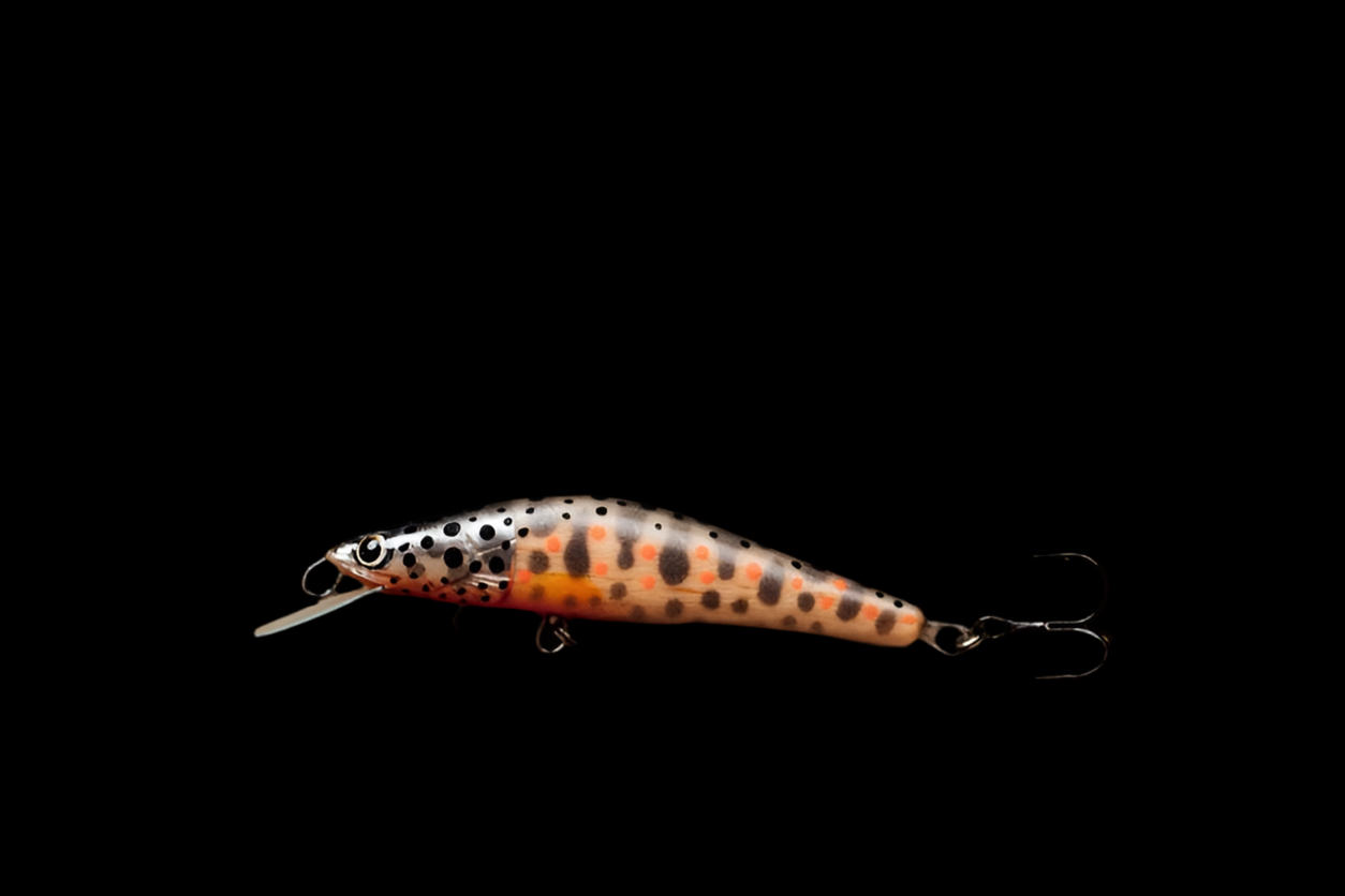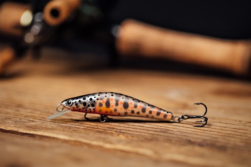 Trout minnow hand-made lure from balsa wood, surface aluminum foil, stainless thru wire construction, and super strong fiberboard lip.